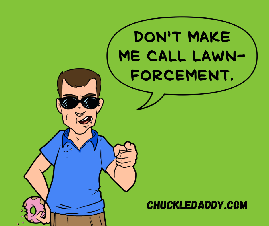 - What’s another name for the grass police? Lawn-forcement.