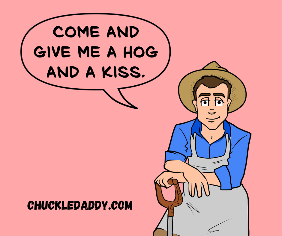 - What do pig farmers give their wives on Valentine’s Day? Hogs and kisses.