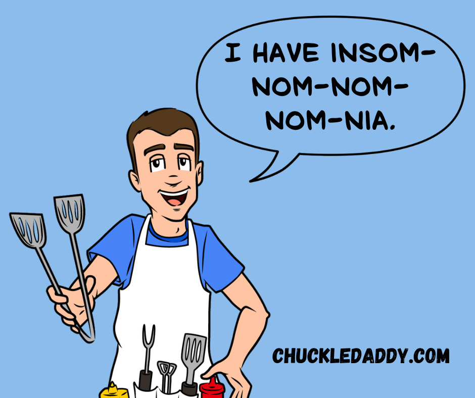- I have a condition that makes me eat when I can’t sleep. It’s called insom-nom-nom-nom-nia.
